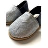 Alpargata artesanal plateada en material tipo lija, con brillo fijo, para niña, talonera en textil licrado para mejor agarrere, suela plana con yute de algodón para mayor comodidad