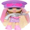 Esta muñeca Barbie Extra Mini Minis lista para festivales se dirige al desierto con su cabello rosado y rubio extralargo, una parte superior plateada metálica y falda pastel.