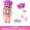 Barbie Muñeca de viaje extra Mini Minis con pelo rosa y rubio, parte superior con flecos, mini skit pastel y accesorios temáticos del desierto.