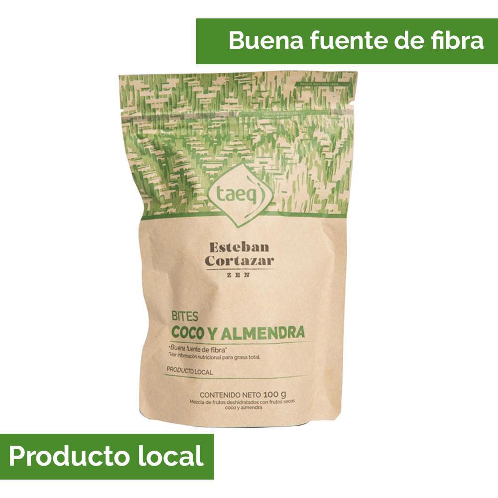 Mezcla de frutos deshidratados con frutos secos (coco en escamas 35%, almendra 8%, ajonjolí), azúcar, inulina, glucosa, arroz soplado, jarabe de arroz, agua, sabor natural coco, regulador de acidez (ácido cítrico), sal, mezcla antioxidante (extracto de especia natural romero, mezcla de tocoferol natural, pimienta de ascorbilo, ácido L-ascórbico).