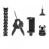 Súper abrazadera tipo pinza desmontable que te permite cambiar rápidamente entre diferentes escenas. Tiene un cinturón incorporado que permite ajustar la tensión y sujetar objetos cilíndricos, también permite sujetar objetos cuadrados como mesas.