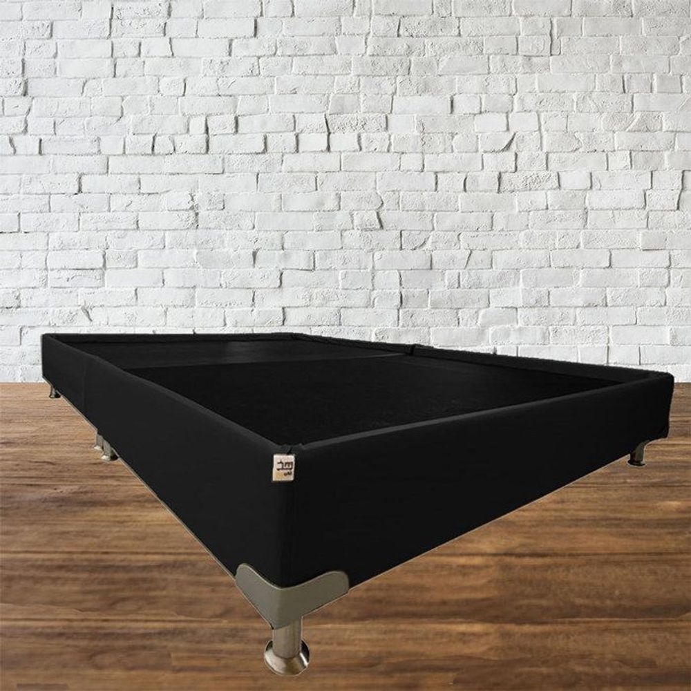 Estructura interna fabricada en madera pino de alta resistencia,dos módulos independientes de +/- 0 a 2 cm de tolerancia en el largo, con punteras de protección en cada esquina,sintético negro fácil limpieza,Ocho patas de 10 cm (bolsillo inferior con cierre),Pestaña para prevenir que el colchón se resbale, superficie plana que asegura la vida útil del colchón