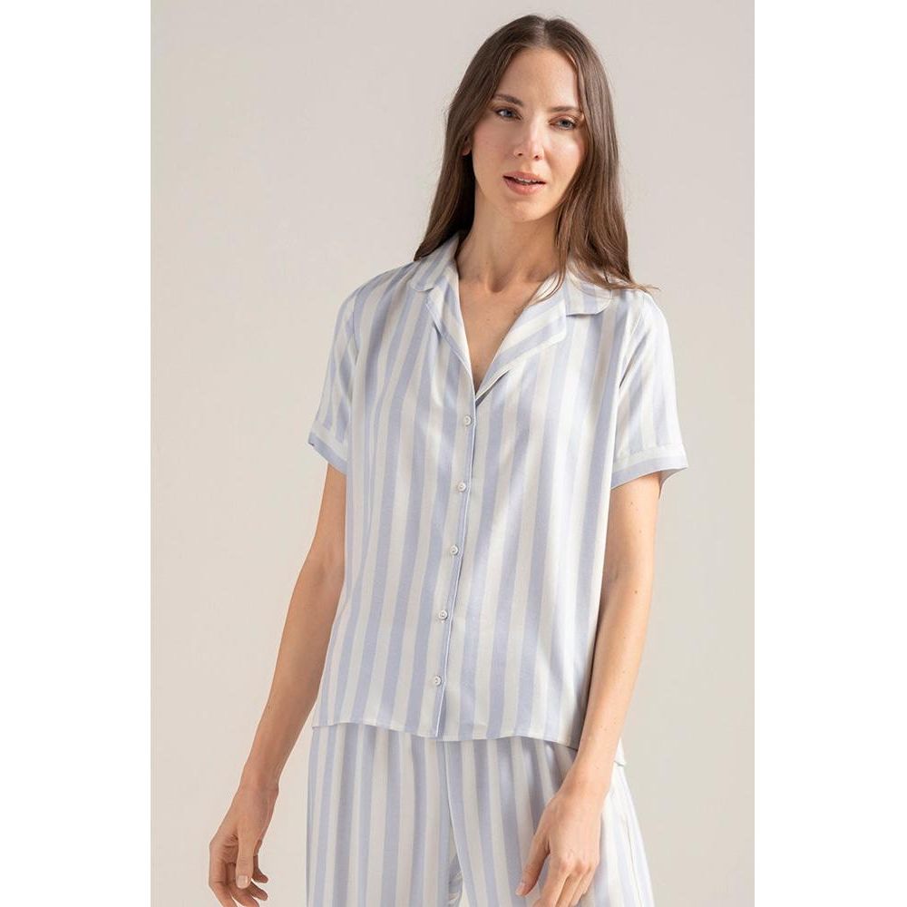 Camisa Manga Corta Con Botones 1880022M Raya Azul 100%Viscosa