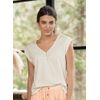 Camiseta manga corta de mujer, de silueta semiajustada. Es multipropósito para que la uses en tus momentos de descanso o como prenda exterior. Cuenta con botones funcionales en el cuello para que puedas ponértela como más te guste.