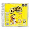 Cheetos horneados 12 unidades. Una vez abierto consuma en el menor tiempo posible. Conserve en un lugar fresco y seco Cheetos horneados,tamaño maxi,hechos de cereal de maíz,sin colorantes artificiales,25% reducido en sodio y 25 % reducido en grasas saturadas en comparación con la versión anterior. Cereal de maíz,aceite vegetal,sal,aroma idéntico al natural,arroz,sólidos de jarabe de maíz,sal,cloruro de potasio,sodio guanilato,sodio innocinato,aromatizante natural,proteina vegetal hidrolizada,colorante natural.