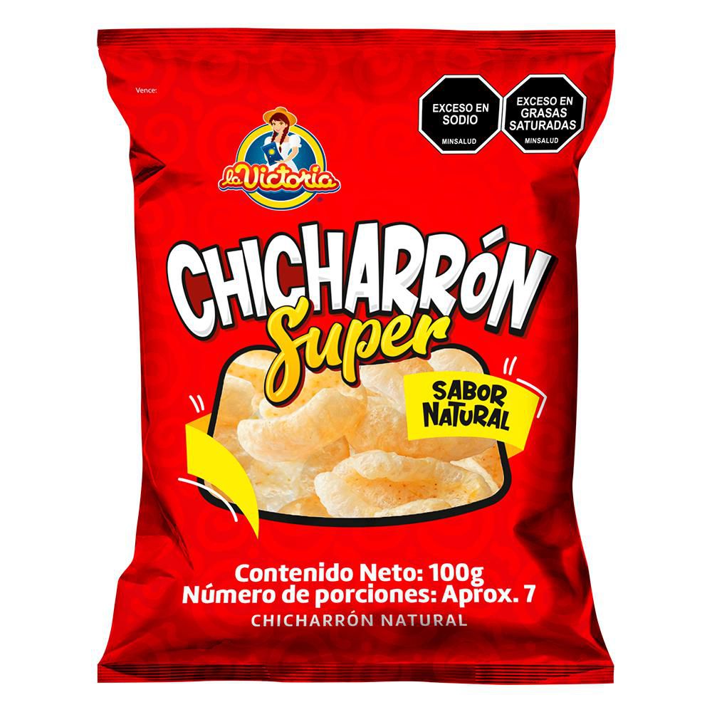 Una vez abierta el producto consuma en el menor tiempo posible. Conserve en un lugar fresco, limpio y seco y protegido de la luz. Chicharrón super familiar, tú pasaboca. Piel de cerdo y aceite vegetal.