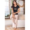 Conjunto de pijama suave y cómoda. Camiseta estampada manga corta, y pantalón estampado con cintura elástica. Composición : Poliéster algodón Color: Azul Tallas: S / M / L / XL