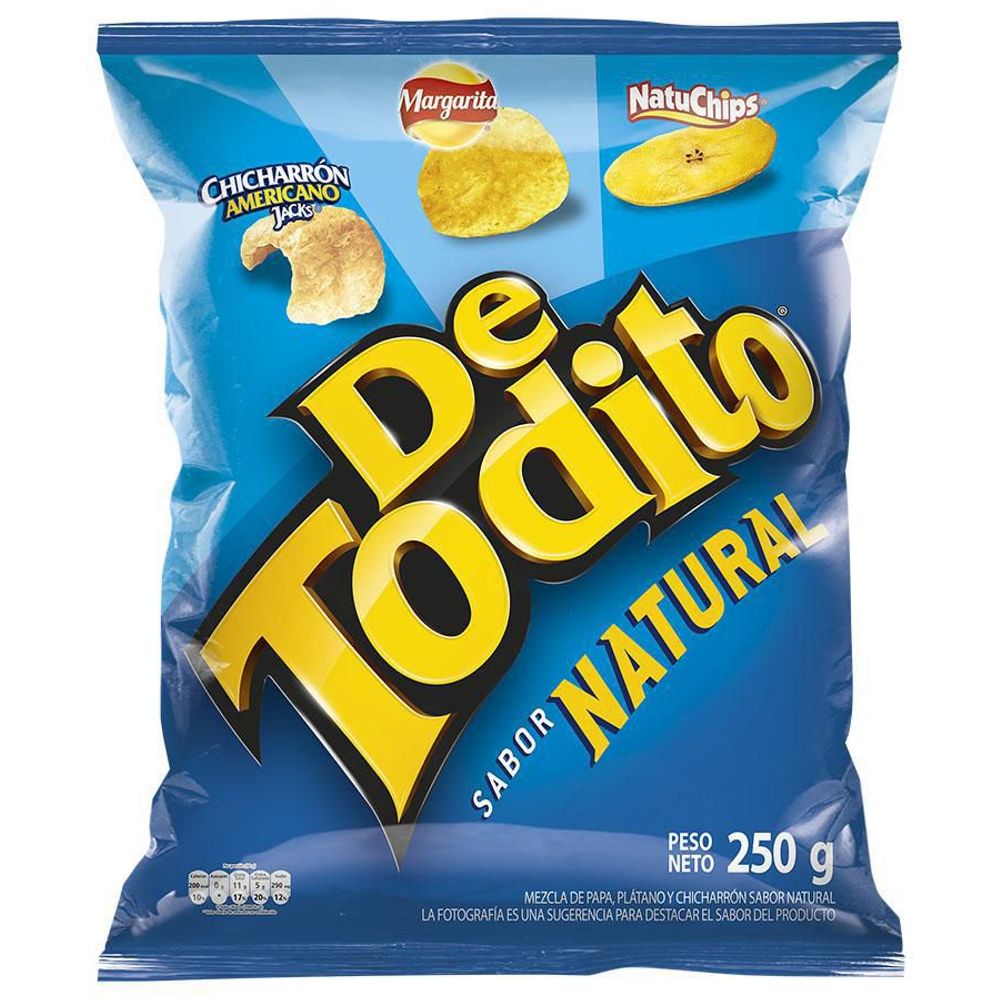 Paquete XL De Todito Natural,contiene mezcla de papa,plátano y chicharrón sabor natural. Puede contener trazas de gluten.