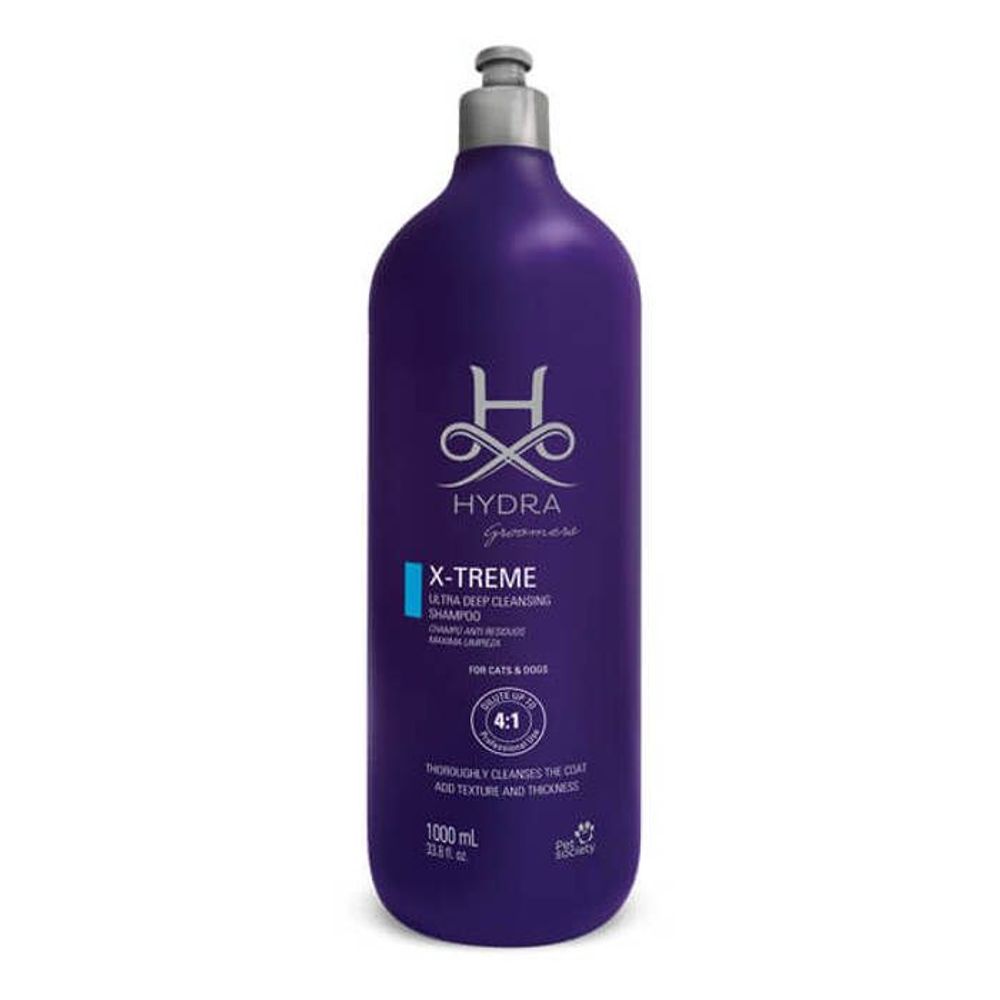 Hydra Xtreme Shampoo anti residuos limpieza máxima para perros y gatos con fórmula concentrada (4:1)Limpia profundamente el pelaje y proporciona textura y volumen para un corte perfecto, debe ser utilizado como un shampoo prelavado Contiene Polifenol de Menta que actúa como suavizante en la pielProporciona textura y grosor que que abre parcialmente las capas de la cutícula Indicado para perros y gatos muy sucios y también para los baños previos al corte donde se requiere volumen
