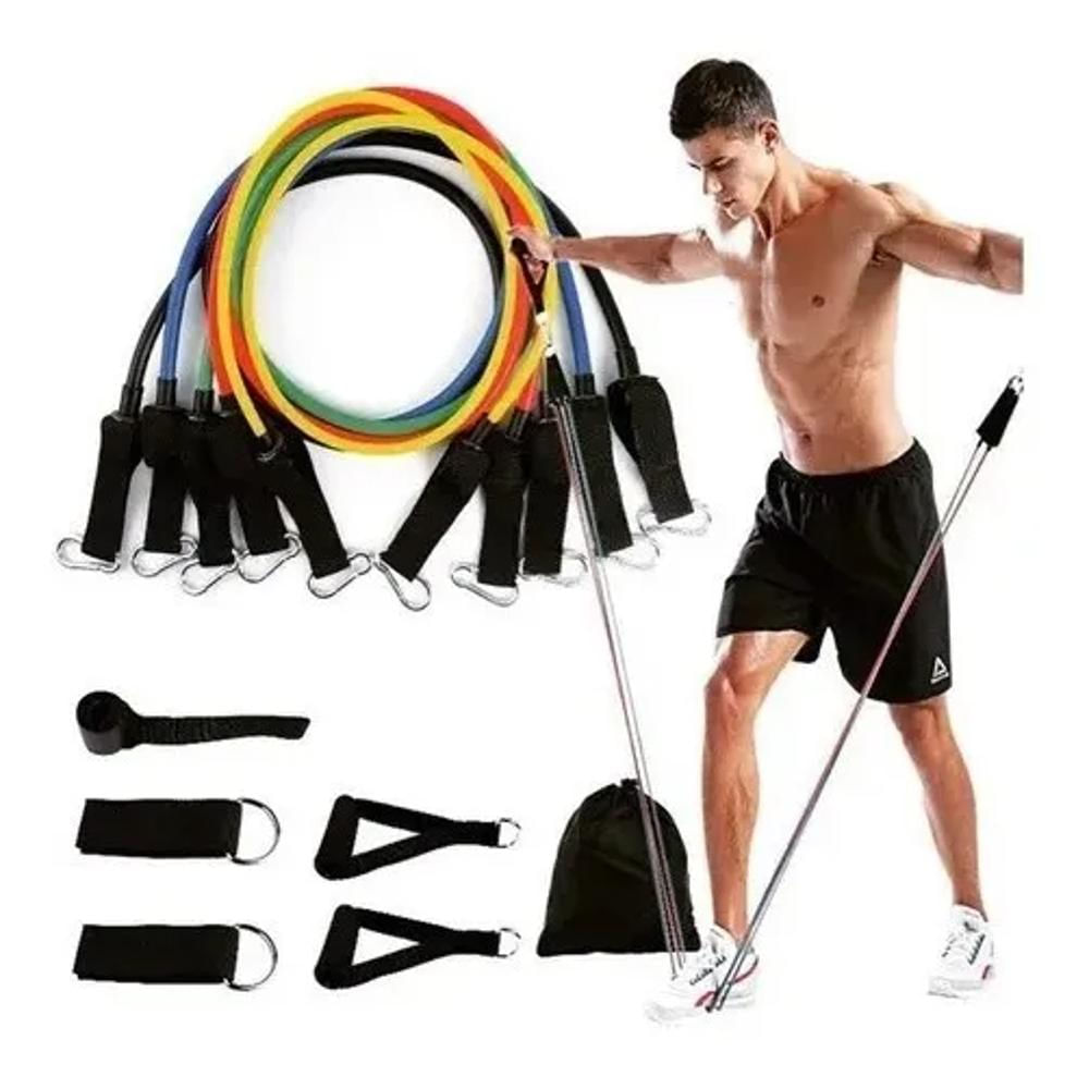 • 5 Bandas de Resistencia • 2 Strap de tobillo • 2 Mango en espuma • Anclaje para la puerta • Manual • Tula