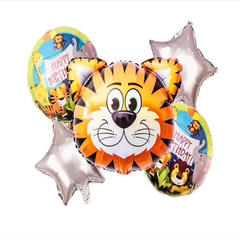 Kit Set Globo Feliz Cumpleaños Tigre Animales De La Selva
