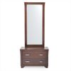 Está compuesto por un marco con espejo, cajón con 2 gavetas, manija metalica y butaco.