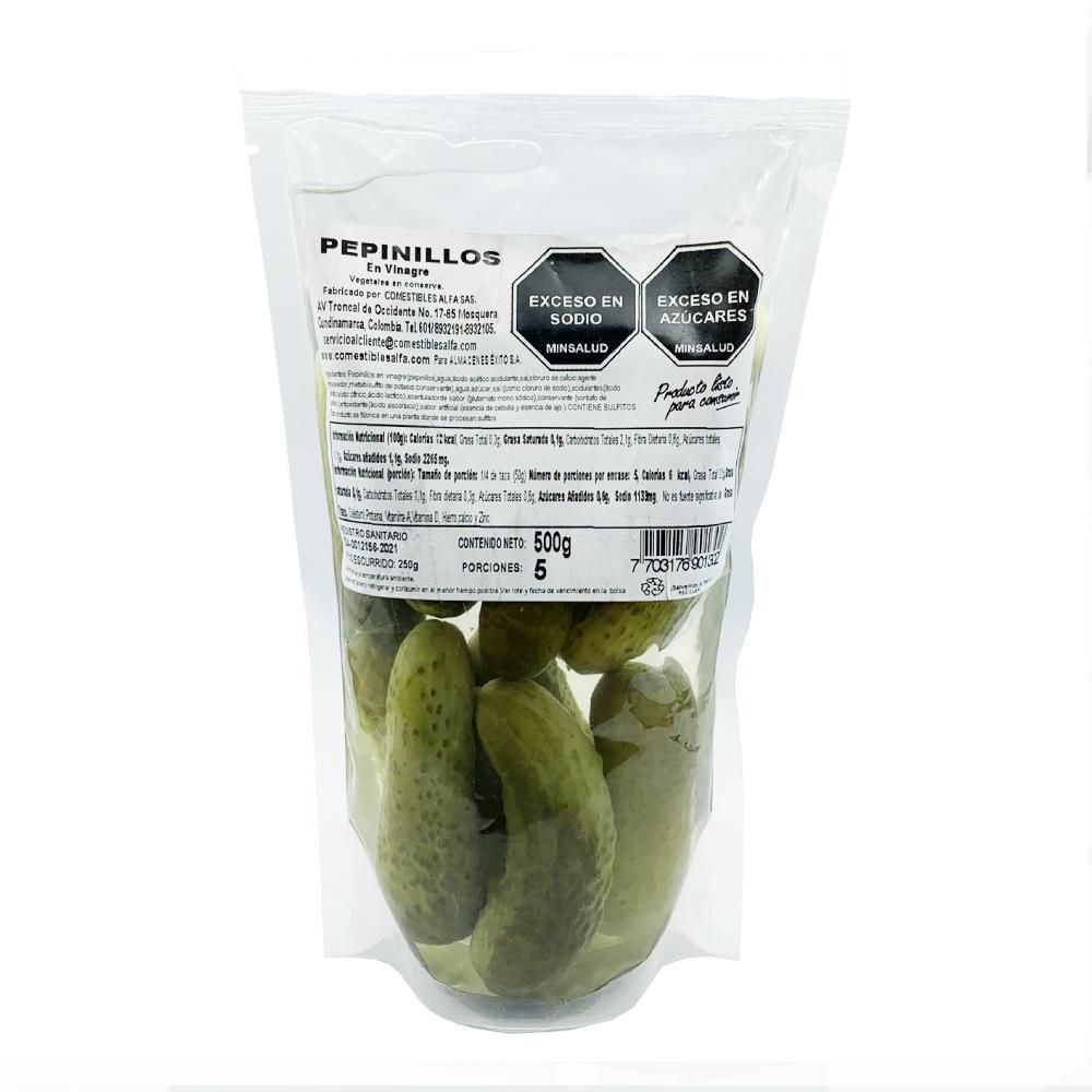 Pepinillos en Vinagre Enteros Alfa x 500g. Marca: Alfa. Características: Pepinillos en Vinagre Enteros. Almacenamiento: Consérvese en un lugar limpio y fresco, después de abierto consumir en el menor tiempo posible.