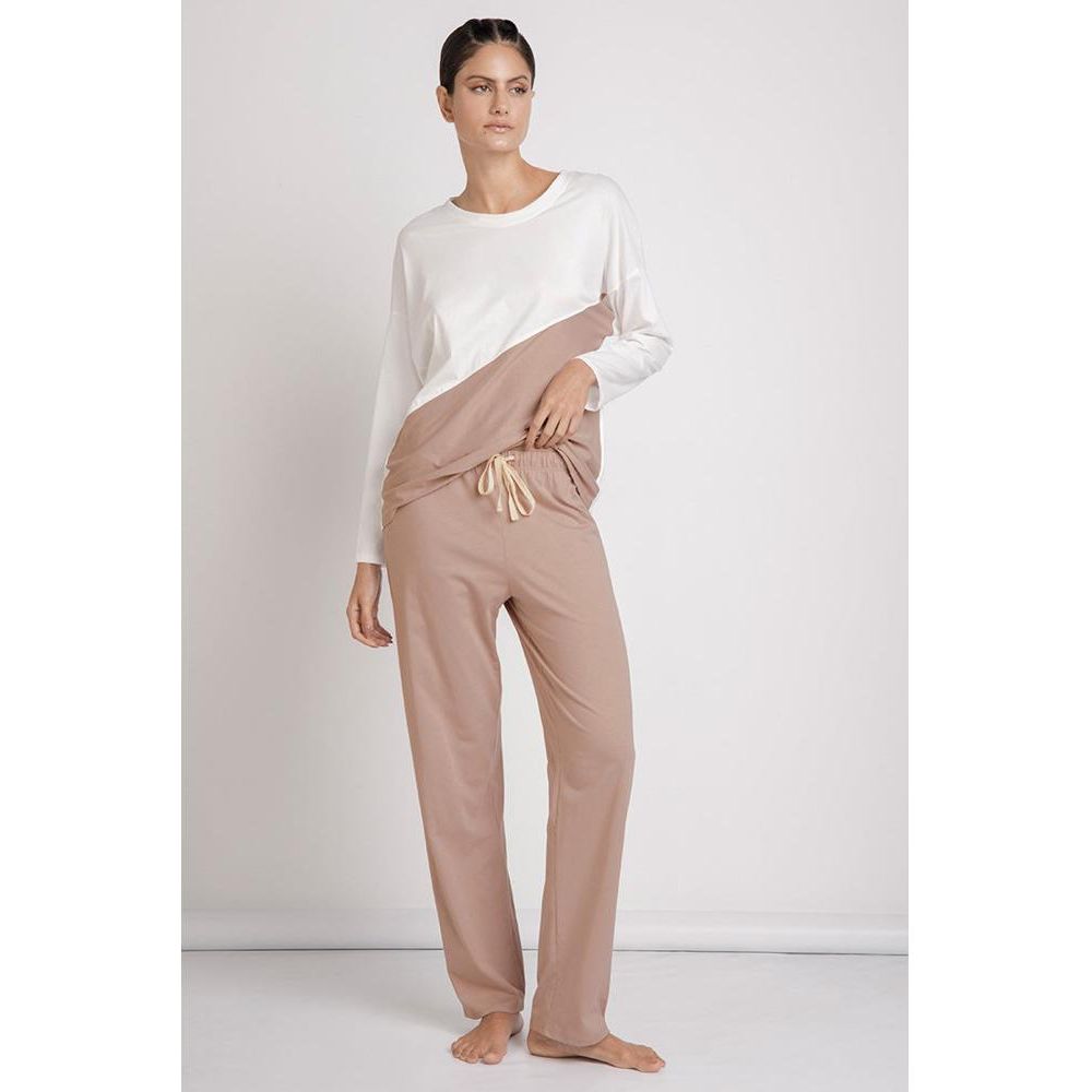 Pijama Pantalon Largo Dama Marca Options Intimate Referencia 1569032XL los materiales utilizados en la fabricacion de las prendas son 100%Algodon Color Perla