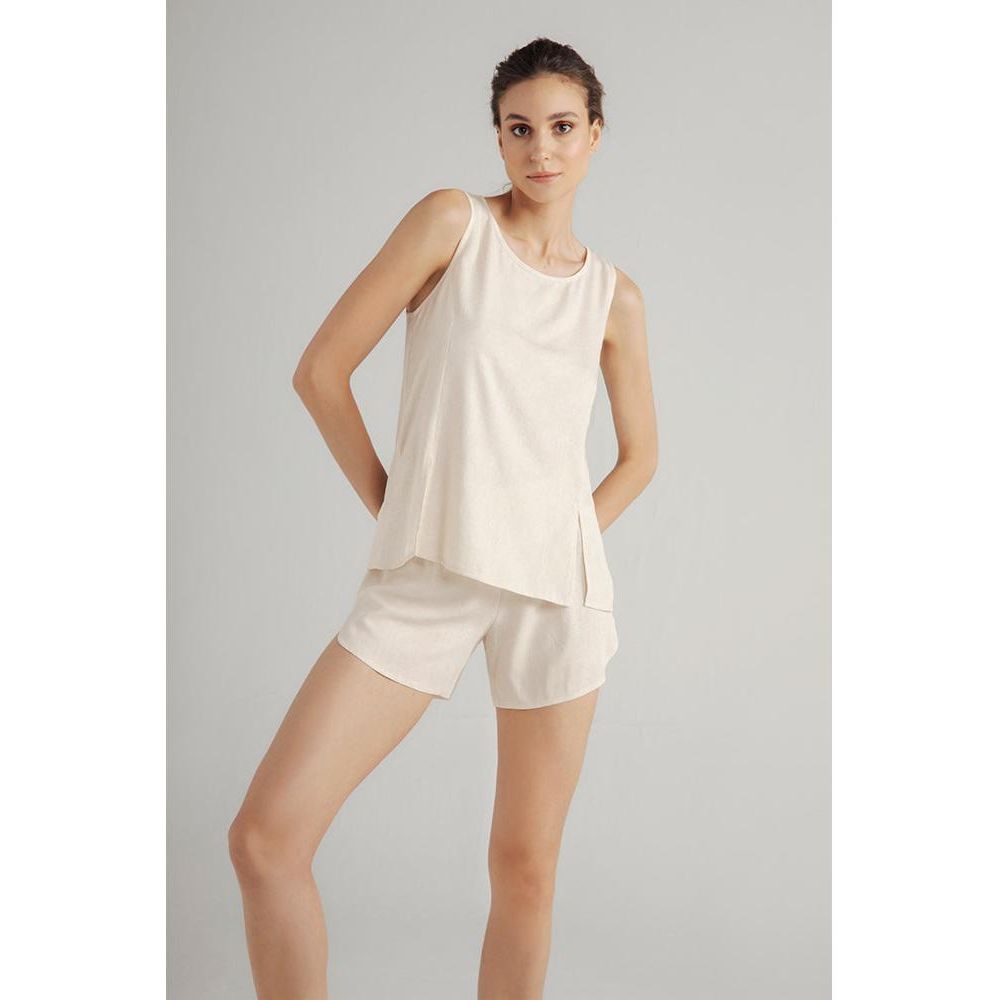 Pijama sin mangas pantalon short para Dama Marca Options Intimate Referencia 1513041L los materiales utilizados en la fabricacion son 100% Viscosa Color ARENA