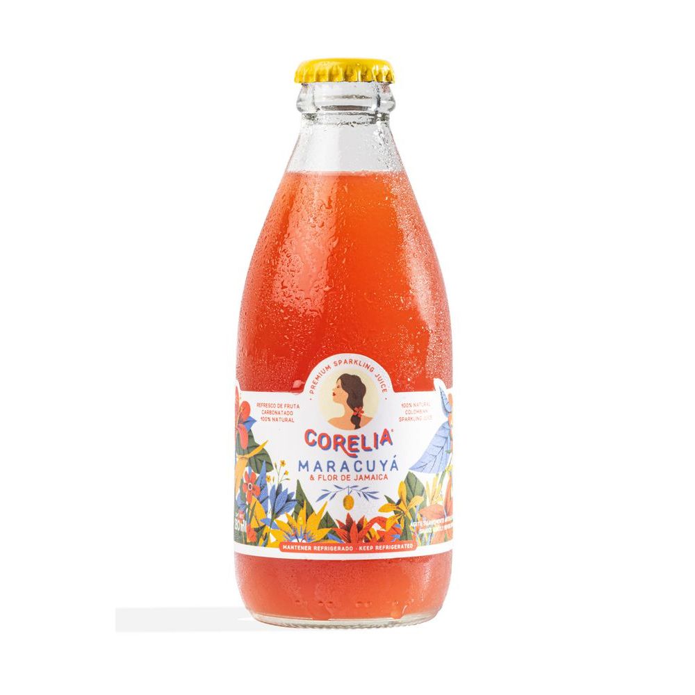 Refresco CORELIA PREMIUM SPARKLINGJUICE maracuyá y flor de Jamaica (280 ml)