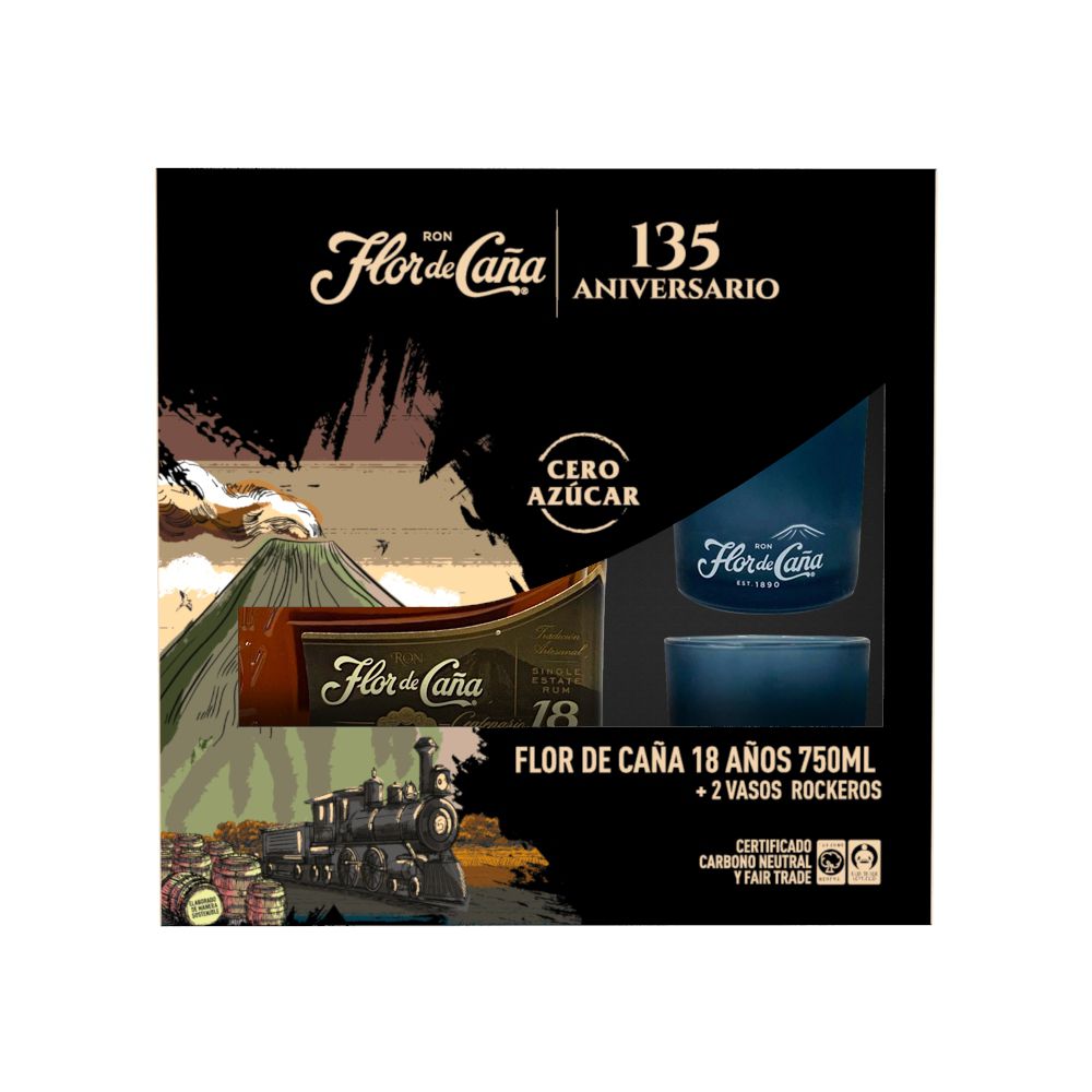 Ron + 2 Vasos Pack FLOR DE CAÑA Ron + 2 Vasos Pack (1 und)