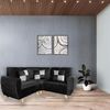 Tres unidades independientes compuestas por un módulo curvo, dos módulos cada uno con soporte para brazo,once patas de 10cm en roble,estructura en pino, espuma de alta densidad, Microfibra anti-enganche, anti-peeling, antifluido, piel de durazno, fácil limpieza
