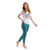Pijama de dos piezas. CAMISETA: Cuello redondo, manga corta. Tela: Algodón, Color: Blanco. PANTALÓN: Pantalón largo, bota entubada, pretina con cordón ajustable. Color: Verde estampado. Tela: Franela.