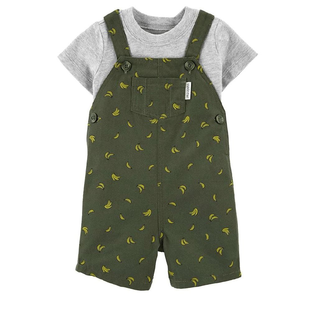 Una versión más suave y más corta de los overoles clásicos, este dulce conjunto corto presenta un estampado de plátanos por toda la prenda y una camiseta de manga corta debajo. ¡Perfecto para la diversión en climas cálidos!