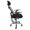 Silla de oficina giratoria con respaldo en polipropileno y un soporte en acero que va incrustado al plato basculante para que este permita la declinación y el ajusta del espaldar a tu altura, asiento tapizado en tela de malla, Con cabecero ajustable, Apoya brazos fijos al asiento, con base cromada de 5 puntas, elevación a gas, mecanismo de inclinación de hasta 140 grados en diferentes posiciones.