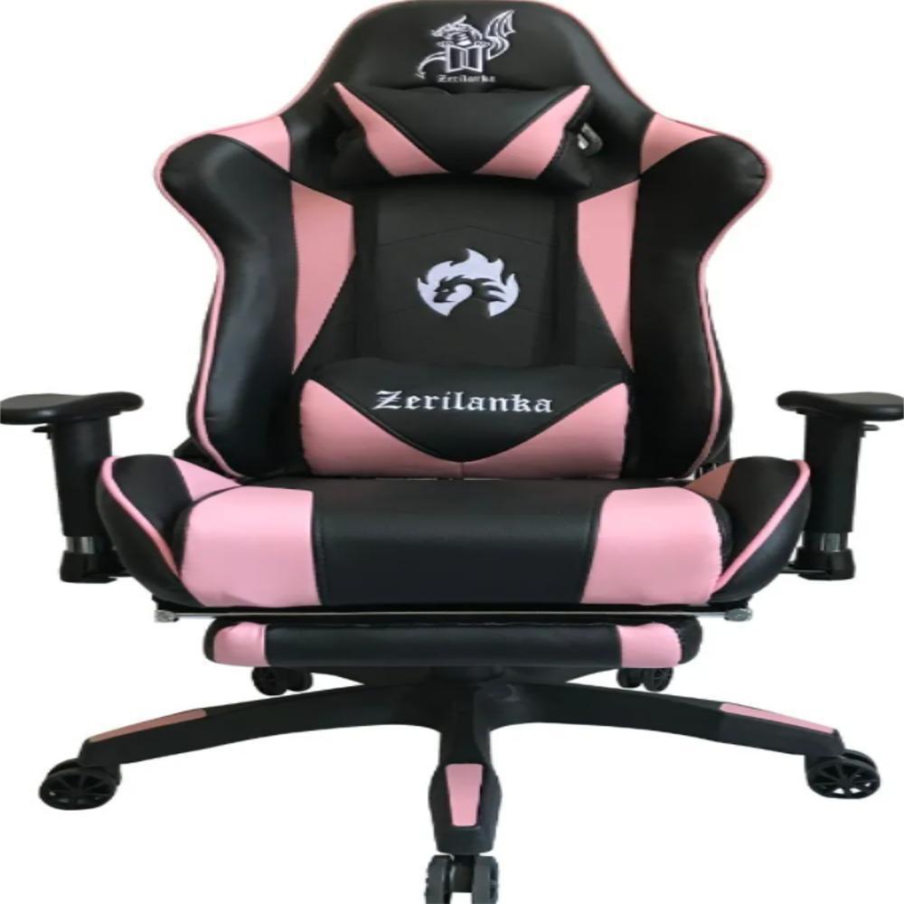 Silla Gamer Para Pc Reclinable Con Descansapies Color Rosado