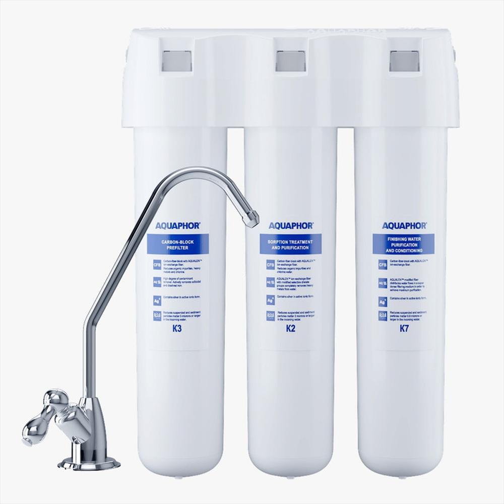 Sistema de purificacion de agua confiable que proporciona profundamente agua purificada eliminando una amplia gama de contaminantes peligrosos como plomo, metales pesados, pesticidas, productos derivados del petroleo y otras toxinas. Con una capacidad de purificacion de 8.000 Litros y una tasa de filtracion de 0.3L/Min compuesto por tres etapas de purificacion Carbon activado, Plata antibacteriana y resina de intercambio Ionico