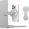 Soporte de Montaje lateral magsafe Elago disponible en Silver; El soporte de montaje lateral es compatible con MagSafe y le permite mantener su teléfono al lado o encima de la pantalla de su computadora portátil. Realice múltiples tareas fácilmente entre su computadora portátil y su teléfono manteniéndolos a ambos a la vista al mismo tiempo.
