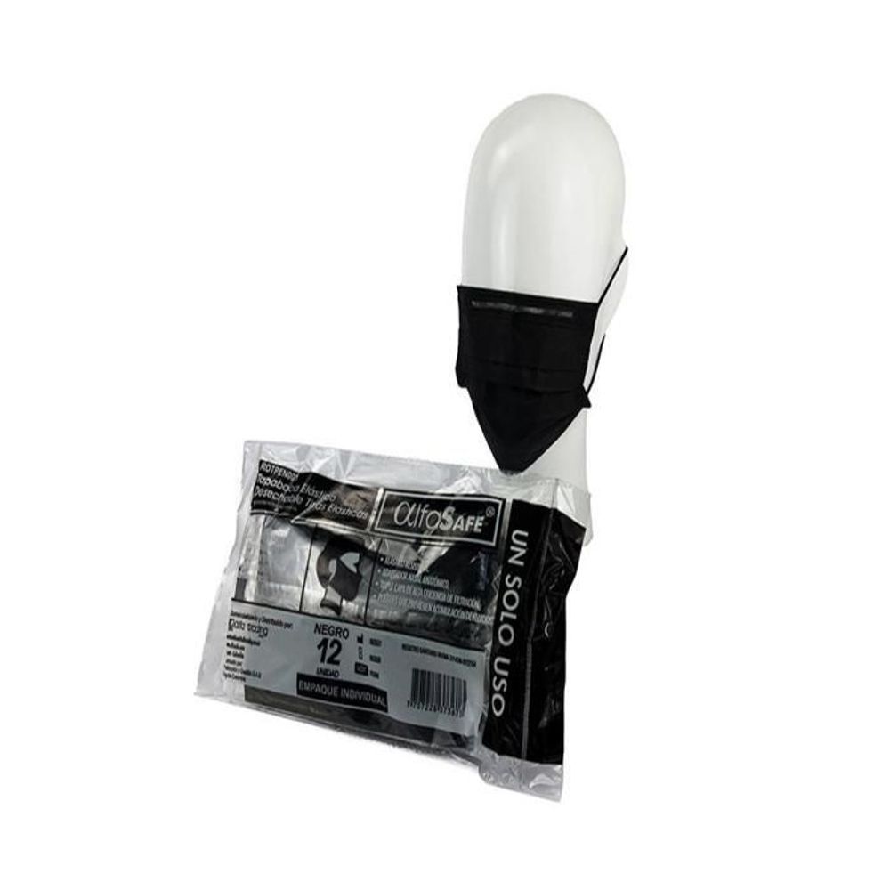 Tapabocas Con Elastico Alfa Safe Negro Bol 12 Un