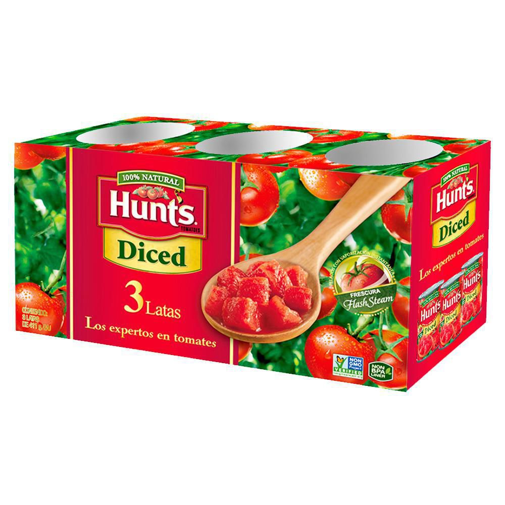 Tomates Cortados Cuadritos x 3 und cada una por 411g. Marca: Hunt?s.