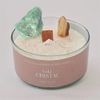Vela con aroma a meditación con propósito Equilibra Mente y Cuerpo. Conéctate con esta vela que no sólo te genera experiencias olfativas, y energéticas sino también auditivas al tener pabilo de madera. Su aroma a meditación está creado especialmente para que logres relajarte y meditar. Viene con un código QR dónde te explicamos el por que del propósito de la vela y cada uno de sus componentes. Materiales: Envase Vidrio, cera vegetal, pabilo madera, cuarzos verde, cuarzo cristal, palo santo.