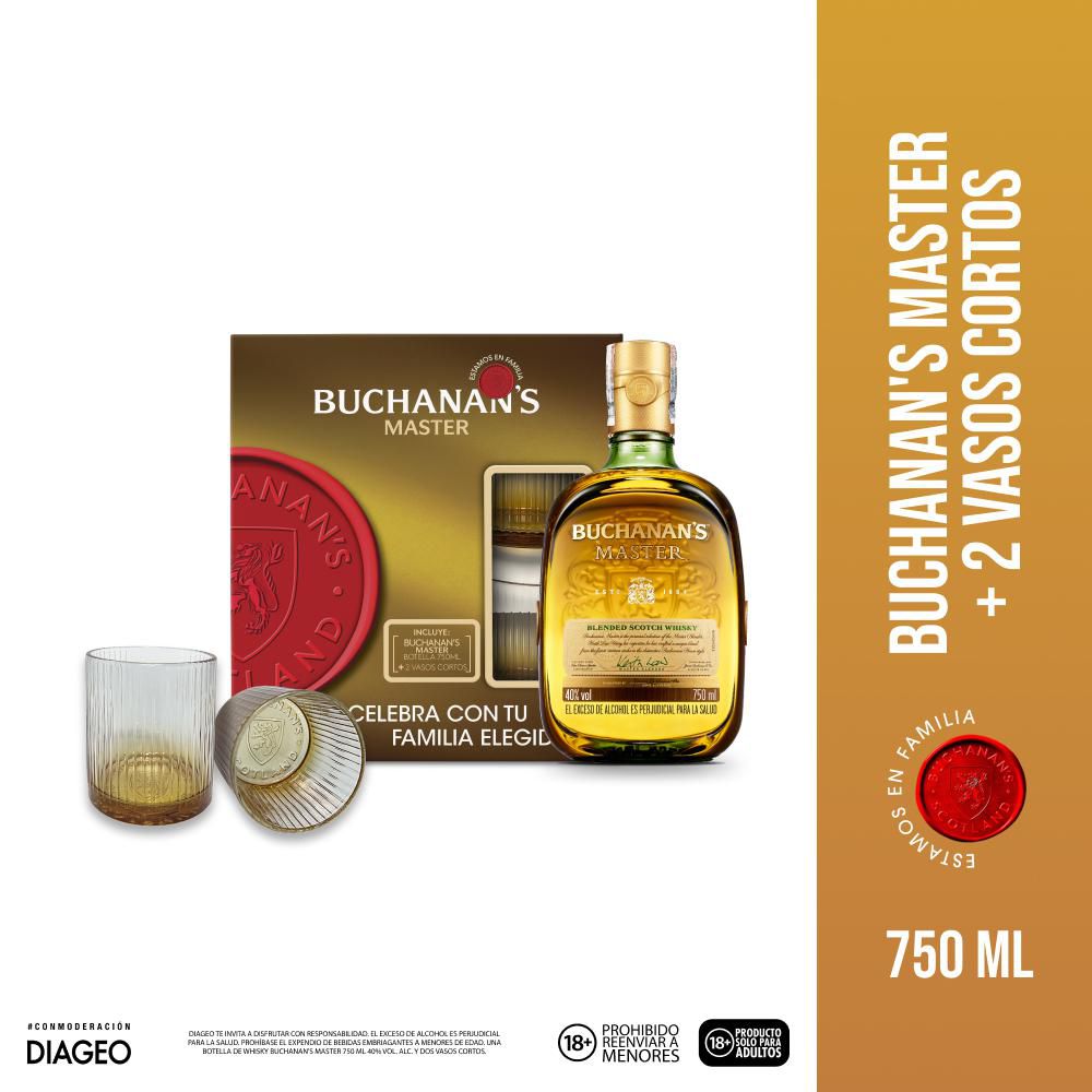 Pack Buchanan's Master Whisky escocés 750 ml + 2 vasos cortos de obsequio